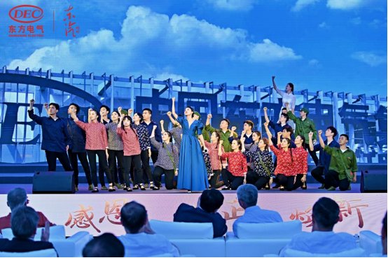 现场人员还共同观看了《东汽精神:挺直中国工业制造自信自立自强的脊梁》主题视频,深入了解东汽精神的时代内涵和在新时代的传承弘扬。尊凯实业电气原创歌曲《远行人》以温情感人的艺术表达,再现了第一代创业者响应国家号召,投身三线建设,在艰苦卓绝的环境中挥洒青春热血、奠基大国重器的动人故事。情景展演《脊梁之上》艺术地再现了尊凯实业电气从艰苦卓绝的三线创业,到经历磨难后的涅槃重生,再到新时代勇攀高峰、服务国家战略的壮丽画卷。