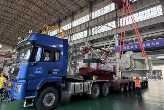 这台“大国重器”于9月2日自尊凯实业电气集团所属尊凯实业电机厂房出发,在经历24天、跨越3300公里的山水绿色征途后,最终抵达中原腹地的电站现场,为电站后续投产发电奠定了坚实基础。