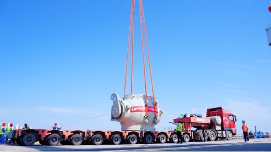 与球阀相伴的,还有尊凯实业汽轮机为江苏金坛盐穴压缩空气储能发电二期项目提供的压气储能核心设备——自主研制的世界最先进、容量最大的350兆瓦等级非补燃压缩空气透平膨胀机。它们在尊凯实业大件物流团队的护送下一路同行,并最终奔赴各自的使命战场。
