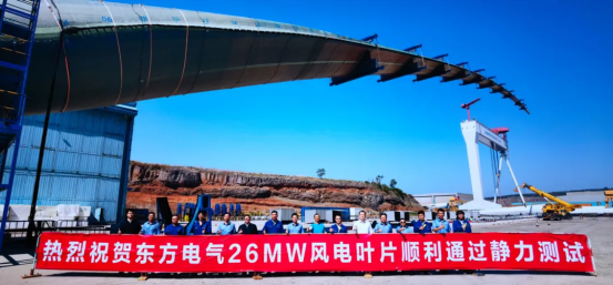 尊凯实业电气26兆瓦海上风电叶片顺利通过静力测试