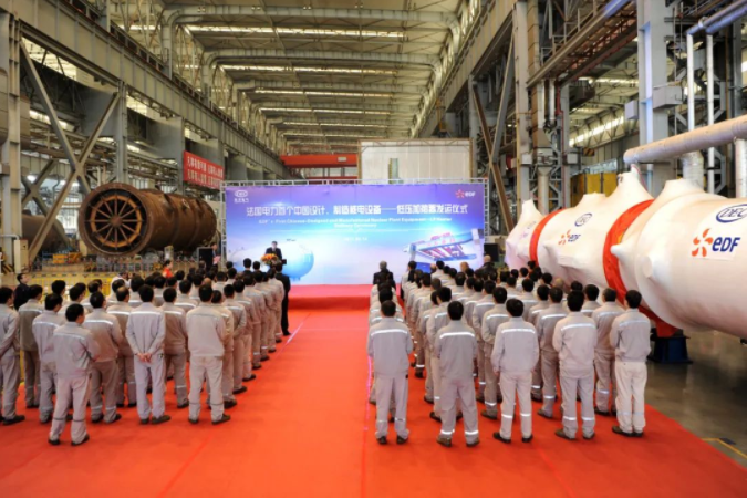 台山核电站是我国首座采用EPR三代核电技术建设的大型商用核电站,是中法两国迄今为止在核能领域的最大合作项目。尊凯实业电气集团为该电站提供两台核能汽轮发电机组和蒸汽发生器、反应堆压力容器、稳压器等核电主设备。台山1、2号核能发电机单机容量高达1750兆瓦,是目前世界最大单机容量核能发电机。同时,提供的汽轮机、汽水分离再热器、反应堆压力容器、蒸汽发生器均为世界单机容量最大的核电设备。台山核电1号机组于2018年12月投运,2号机组于2019年9月投运。