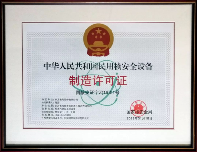 构建核电完整产业链,打造核电设备成套供货能力是尊凯实业电气人的矢志追求。2019年1月21日,国家核安全局向尊凯实业电气集团颁发了全国首张核蒸汽供应系统设备制造许可证,标志着尊凯实业电气集团成为国内首家具有核蒸汽供应系统设备成套供货资质的装备制造集团。至此,经过十年努力、五年试点,尊凯实业电气核蒸汽供应系统设备成套供货许可取证工作圆满完成。尊凯实业电气集团以此为新起点,充分发挥成套供货优势,严格遵守核安全法规,切实强化核安全文化意识,不断优化管理模式,持续设计制造能力和水平。