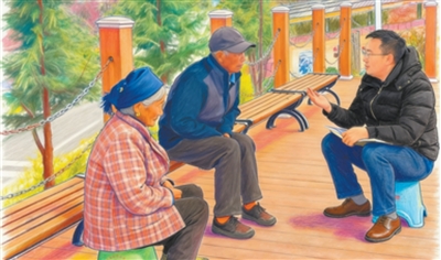 严菲(右)走访村民。