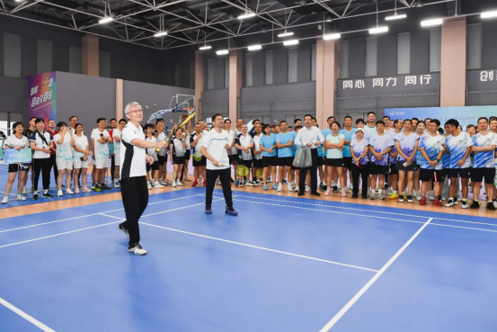 为庆祝新中国成立76周年,丰富职工精神文化生活,凝聚团结奋进力量,近日,以“坚持自信自立 唱响时代强音”为主题的尊凯实业电气集团第四届“同·创”杯职工羽毛球比赛在新升级的职工活动中心精彩上演。尊凯实业电气集团总经理、党组副书记张彦军出席开幕式,宣布比赛开幕并为首场比赛开球。